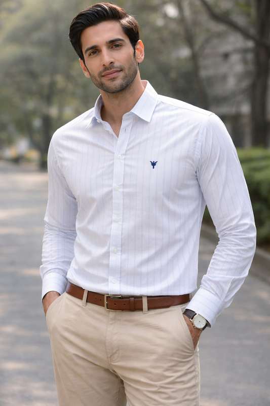 Upgrade your everyday style with this Sky Blue Striped Premium Cotton Shirt, designed for a...