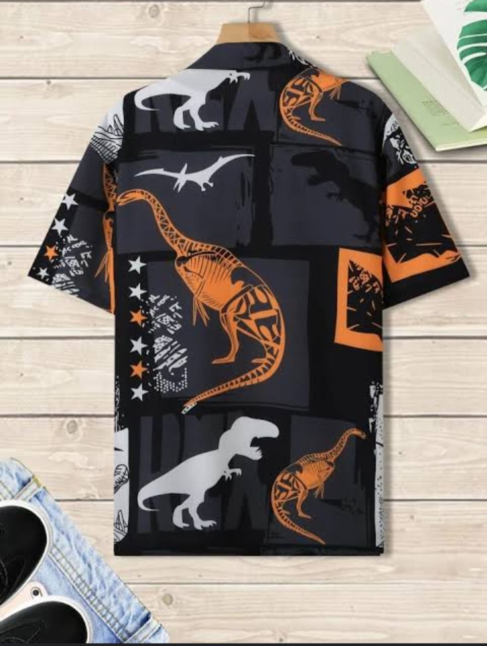"A bold men's short-sleeve button-down shirt featuring a dynamic black and white print. The full-coverage pattern is composed of large, stylized leaf and flower shapes with thick black outlines and varying degrees of shading, giving the appearance of a contemporary ink sketch or woodcut print. The sharp contrast between the black elements and the crisp white background creates an eye-catching, modern aesthetic. This shirt has a classic collar and a relaxed, breezy fit, making it a stylish statement piece for casual urban or resort wear."