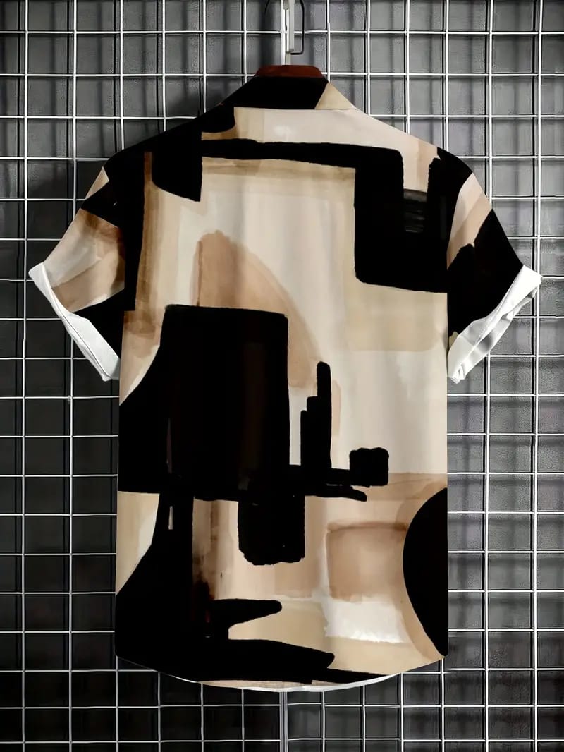 Upgrade your wardrobe with the Densetrend Abstract Print Shirt, crafted from premium imported lycra fabric for unmatched comfort and stretch. The bold geometric abstract design in beige, brown, and black tones gives a modern artistic touch — perfect for men who like to stand out in style.
