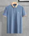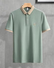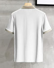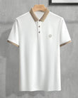 Elevate your casual wardrobe with the Apex Knitwear Polo. Crafted from premium white fabric with refined dark green accents on the collar and cuffs, this short-sleeved polo shirt offers a clean and contemporary look. The subtle chest emblem adds a touch of understated branding. Perfect for everyday wear or smart-casual occasions]