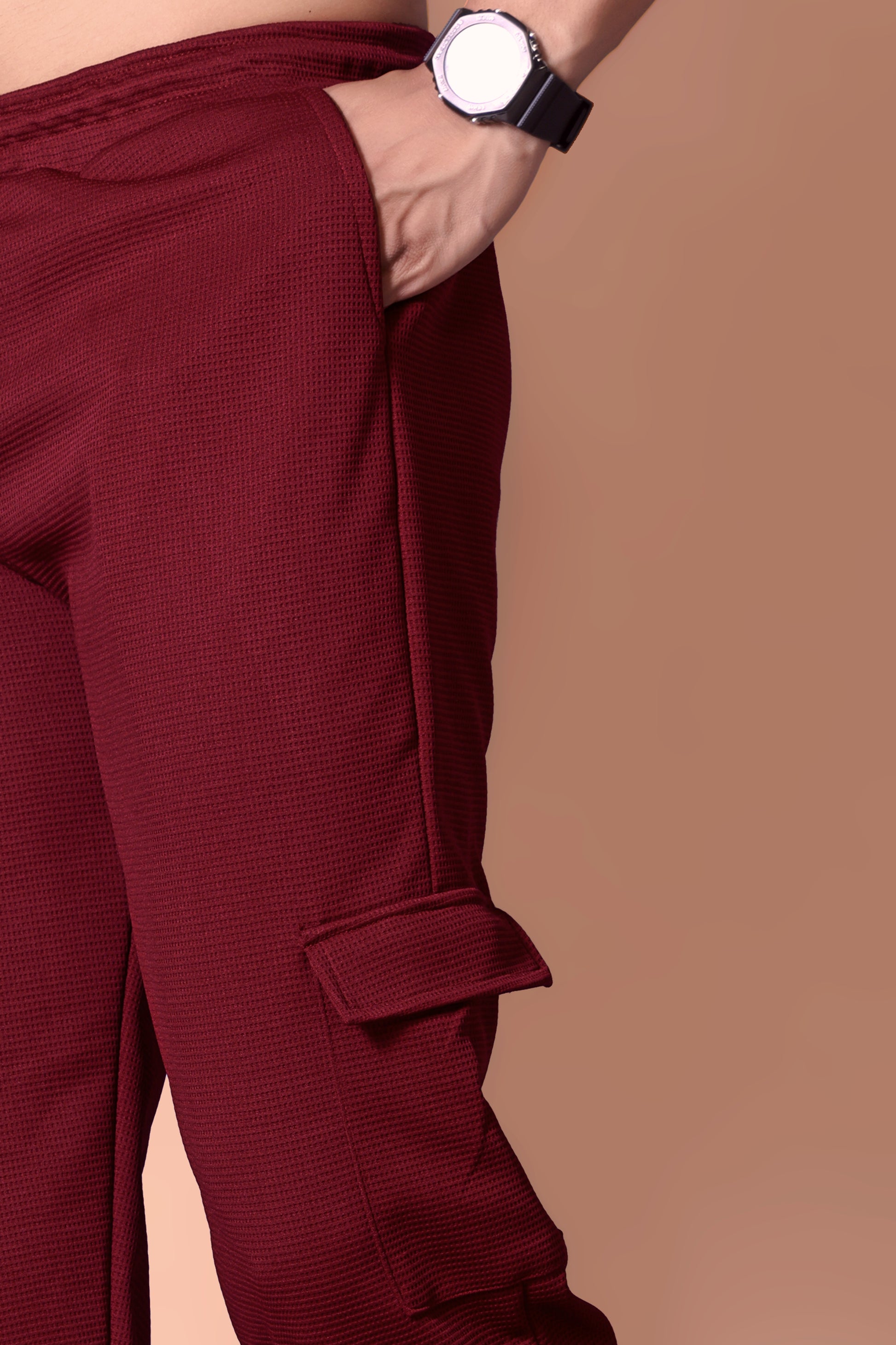 Stylish Men's Waffle Maroon Knit Jogger & T-Shirt Co-ord Set